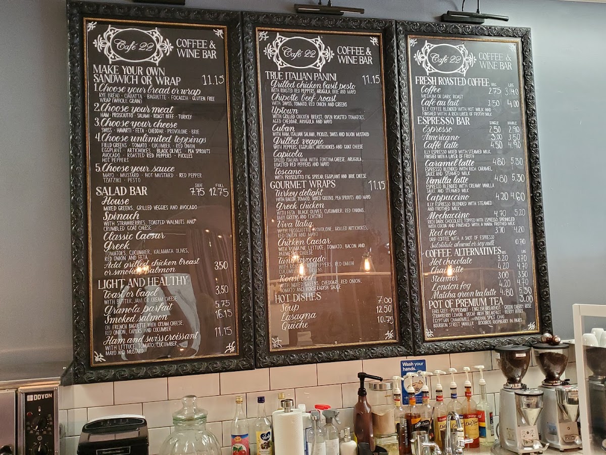 Welcome to Café 22, a delightful spot nestled at 22 King St S in the heart of Waterloo. This charming café exudes a cozy ambiance reminiscent of European establishments, making it an ideal escape for coffee lovers and food enthusiasts alike. The menu is a delightful mix of flavors, featuring hot dishes such as lasagna and quiche, along with light options like the ham and Swiss croissant that promises a satisfying experience.